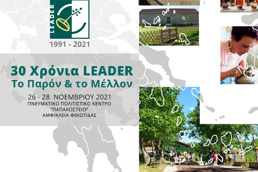 Στο πλαίσιο λειτουργίας του Εθνικού Αγροτικού Δικτύου, η Μονάδα Δικτύωσης και Δημοσιότητας με τη συμβολή του Ελληνικού Δικτύου LEADER και των τοπικών φορέων της Αμφίκλειας διοργανώνει την Εκδήλωση «30 χρόνια LEADER – Το παρόν και το μέλλον» η οποία θα πραγματοποιηθεί στις 26-28 Νοεμβρίου 2021 στο Πνευματικό Πολιτιστικό Κέντρο «Παπακώστειο» στην Αμφίκλεια Φθιώτιδας.