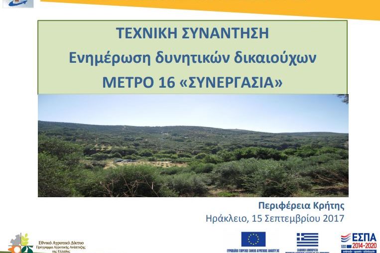 Στο πλαίσιο λειτουργίας του Εθνικού Αγροτικού Δικτύου (ΕΑΔ), η Ειδική Υπηρεσία Διαχείρισης του Προγράμματος Αγροτικής Ανάπτυξης 2014-2020 (ΕΥΔ ΠΑΑ) – Μονάδα Δικτύωσης και Δημοσιότητας σε συνεργασία με την Ειδική Υπηρεσία Εφαρμογής ΠΑΑ – Μονάδα Συνεργασίας και Καινοτομίας και την Ειδική Υπηρεσία Διαχείρισης του Επιχειρησιακού Προγράμματος Περιφέρειας Κρήτης διοργανώνει τεχνική συνάντηση σχετικά με την προετοιμασία και…