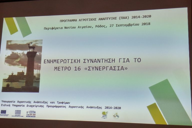Στο πλαίσιο λειτουργίας του Εθνικού Αγροτικού Δικτύου (ΕΑΔ), η Ειδική Υπηρεσία Διαχείρισης του Προγράμματος Αγροτικής Ανάπτυξης 2014-2020 (ΕΥΔ ΠΑΑ) – Μονάδα Δικτύωσης και Δημοσιότητας σε συνεργασία με την Ειδική Υπηρεσία Εφαρμογής ΠΑΑ (ΕΥΕ ΠΑΑ) – Μονάδα Συνεργασίας και Καινοτομίας και την Περιφέρεια Πελοποννήσου διοργανώνει ενημερωτική συνάντηση σχετικά με την πρόσκληση του Μέτρου 16 «Συνεργασία» του…