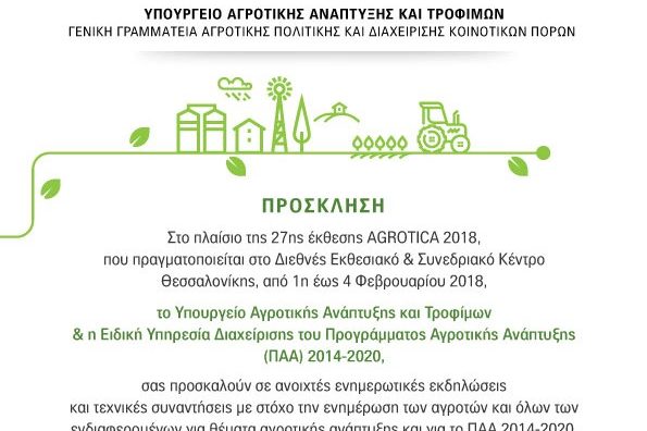 Φεβ62018 Συμμετοχή των Ειδικών Υπηρεσιών του ΠΑΑ 2014-2020 της Γενικής Γραμματείας Αγροτικής Πολιτικής & Διαχείρισης Κοινοτικών Πόρων στην AGROTICA 2018 Δράσεις ΕΑΔ, Νέα, ΠΑΑ Details