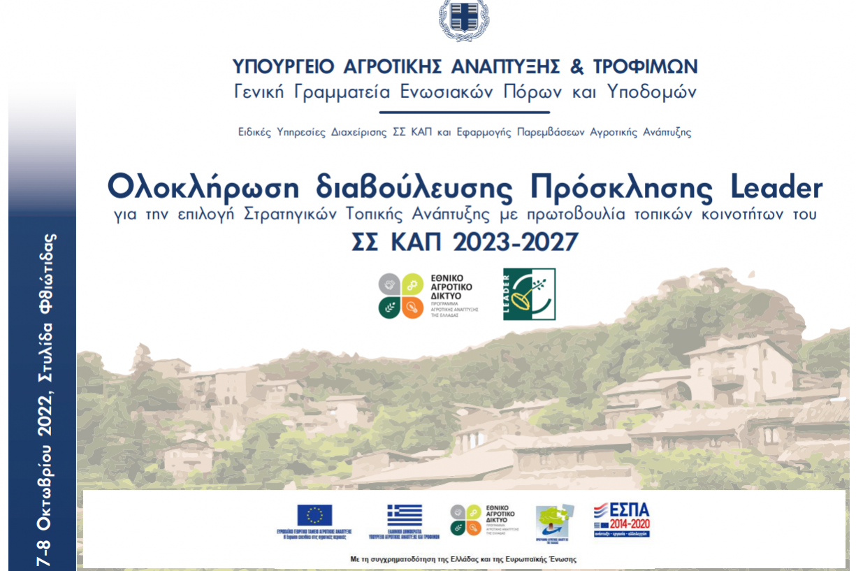 Με επιτυχία πραγματοποιήθηκε στις 7 & 8 Οκτωβρίου 2022 στη Στυλίδα Φθιώτιδας η εκδήλωση του Υπουργείου Αγροτικής Ανάπτυξης και Τροφίμων και της Γενικής Γραμματείας Ενωσιακών Πόρων και Υποδομών για την ολοκλήρωση της διαβούλευσης της Πρόσκλησης LEADER για την επιλογή των Στρατηγικών Τοπικής Ανάπτυξης με πρωτοβουλία των Τοπικών Κοινοτήτων στο πλαίσιο του Στρατηγικού Σχεδίου (ΣΣ) ΚΑΠ.